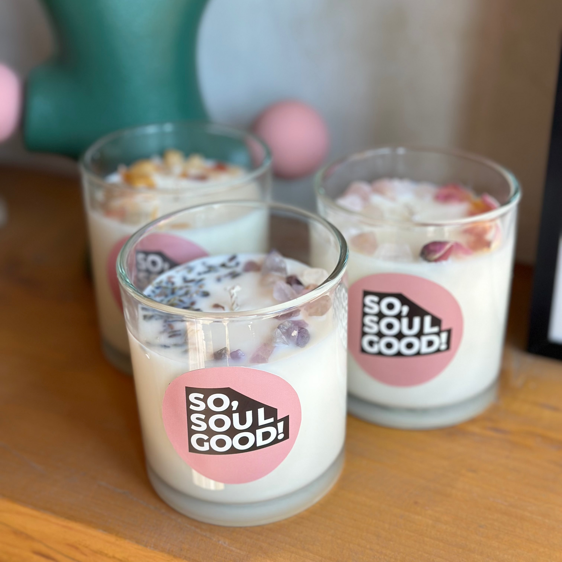 Crystal Infused Manifestation Glass Jar Candles-Lavender